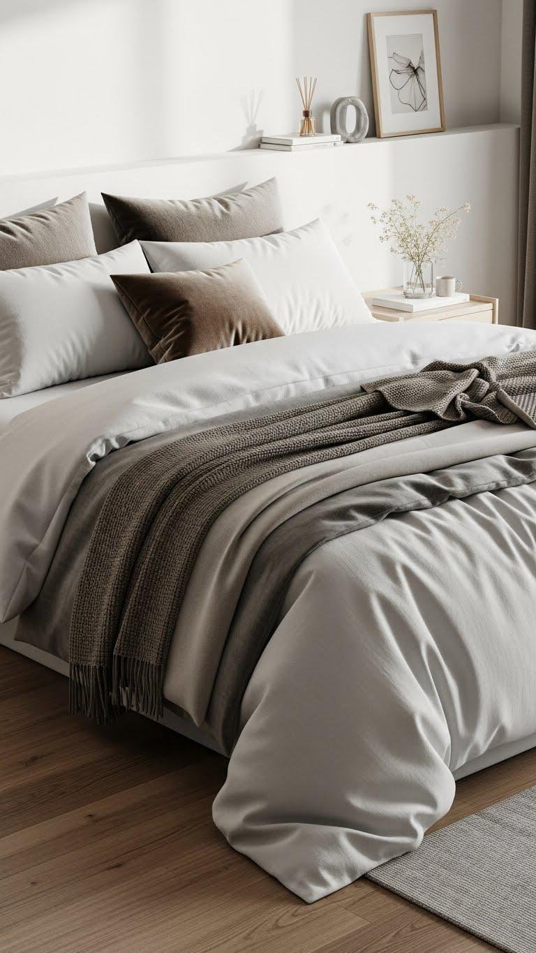 After you’ve mastered pillows and throws, give the whole room a polished, hotel-like feel by building your bed in purposeful stages. You’ll start with crisp sheets, add a light coverlet, then swap in seasonal layers for comfort and mood.