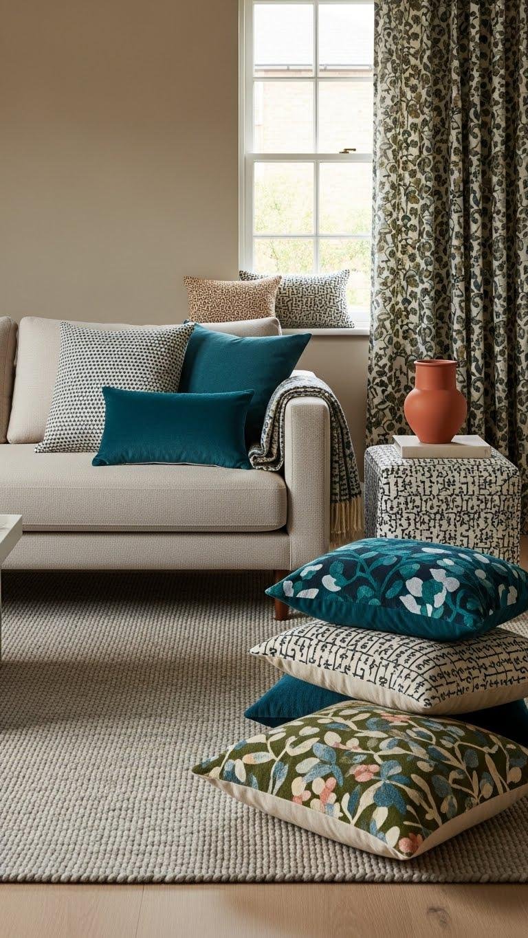 Combine Pattern, Neutral, and Accent in Textiles