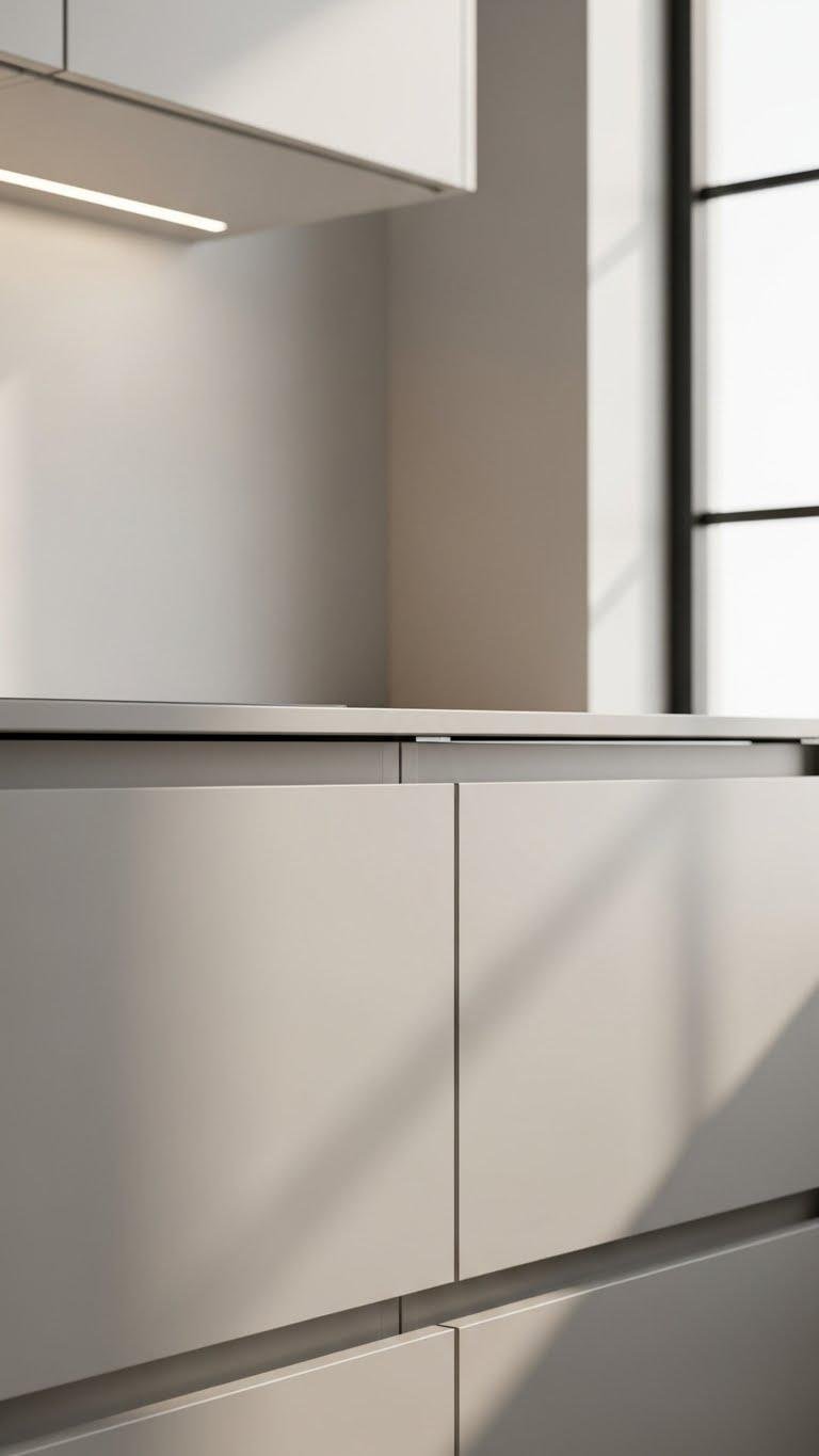 You’ll enjoy surfaces that hide fingerprints, reveal honest materials, and support a minimalist kitchen where movement feels free and visual clutter stays minimal.