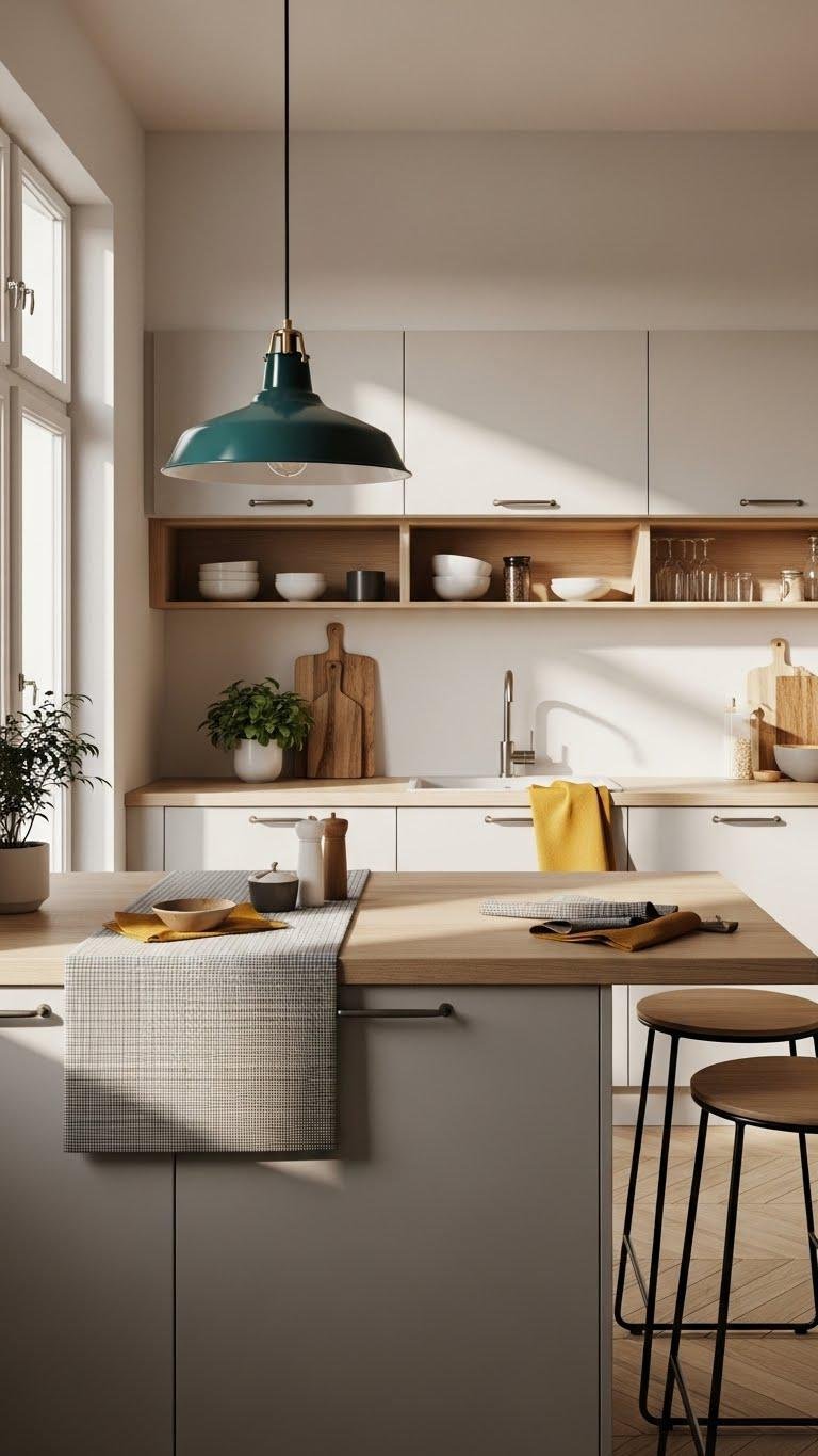 Pair sparingly with statement textiles—tea towels or a runner—to add texture without clutter. You’ll keep the kitchen calm, purposeful, and free to breathe.