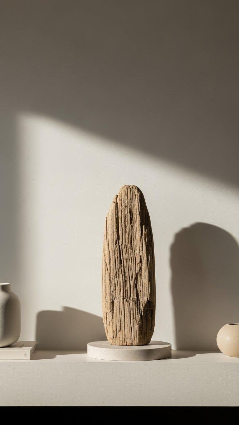Minimalist Driftwood Sculpture With Sand-Colored Accents