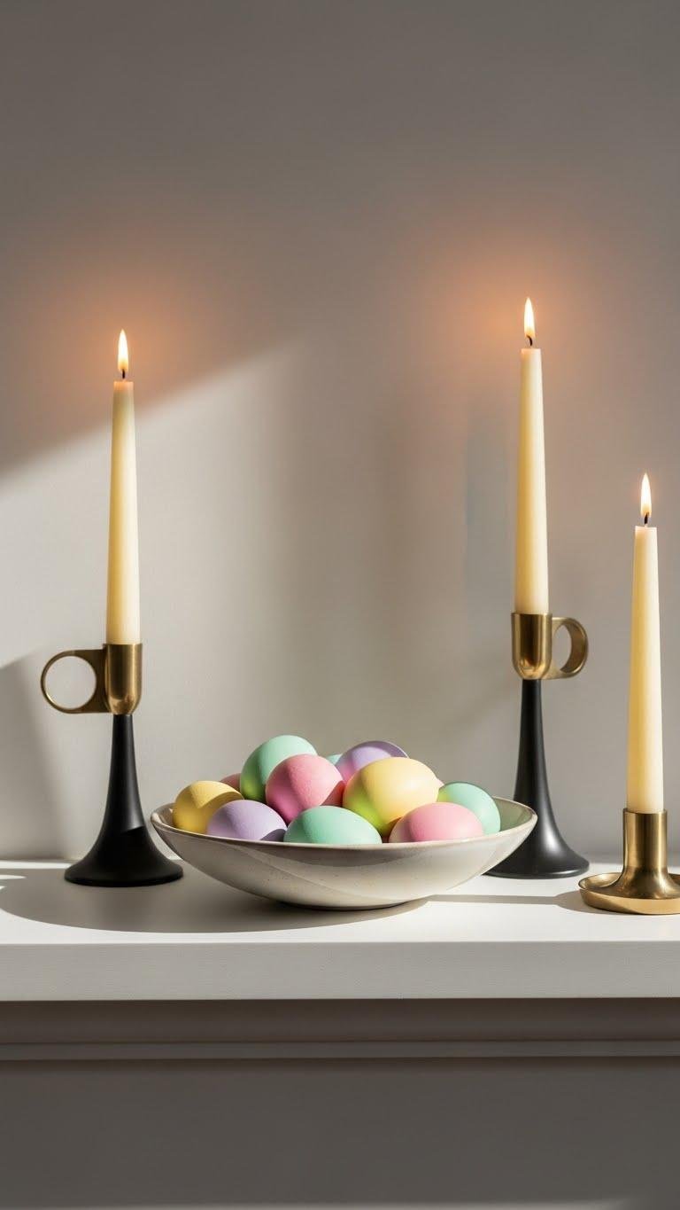 Pastel Easter Egg Bowl With Modern Candle Holders
