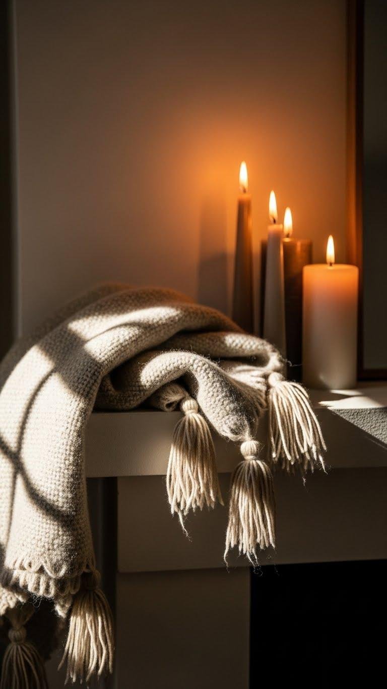 When you drape a soft wool throw over the mantel edge and pair it with a few tapered candles, the space instantly gains warmth and tactile contrast.