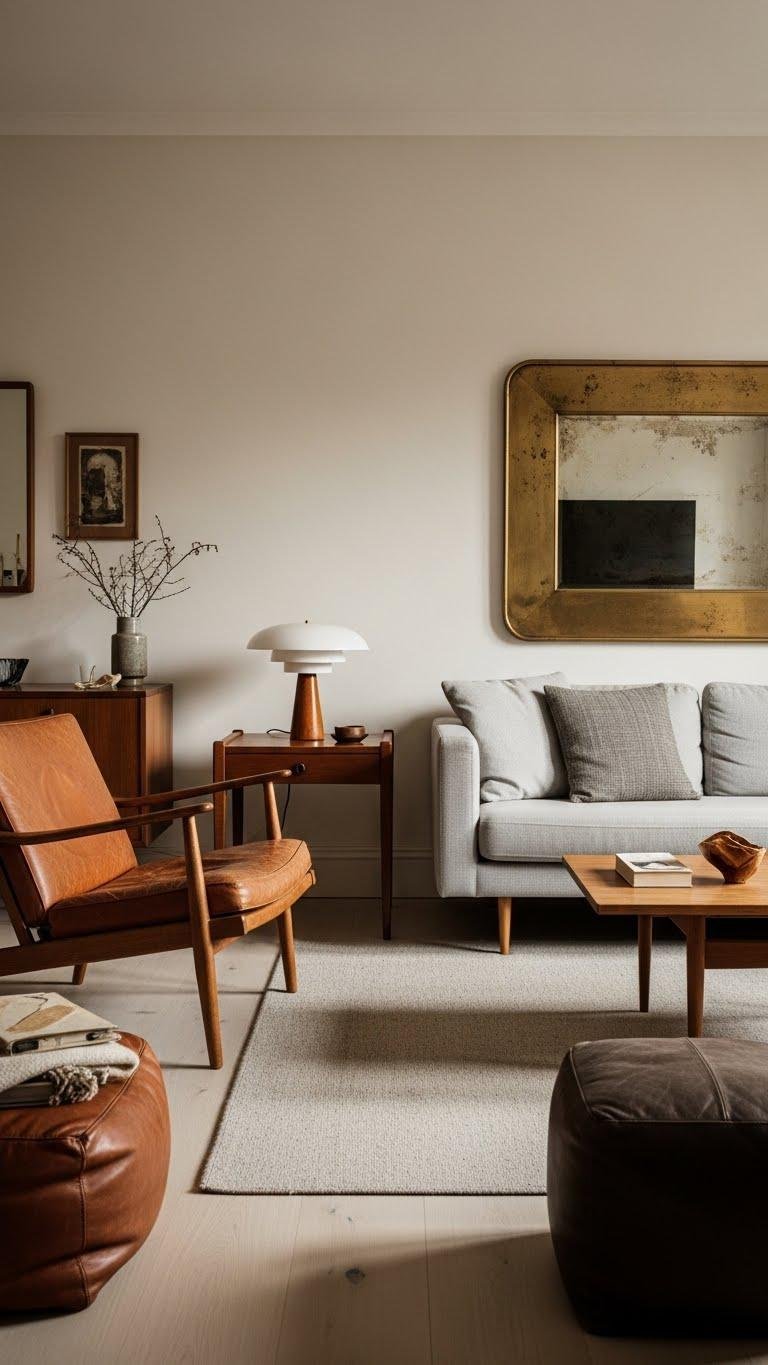 A well-curated mix of vintage finds and modern pieces gives your space character without feeling dated; you’ll anchor the room with contemporary, streamlined furniture and punctuate it with a few timeworn treasures — a mid-century lamp, a patinated mirror, or a worn leather chair — that add texture and story.