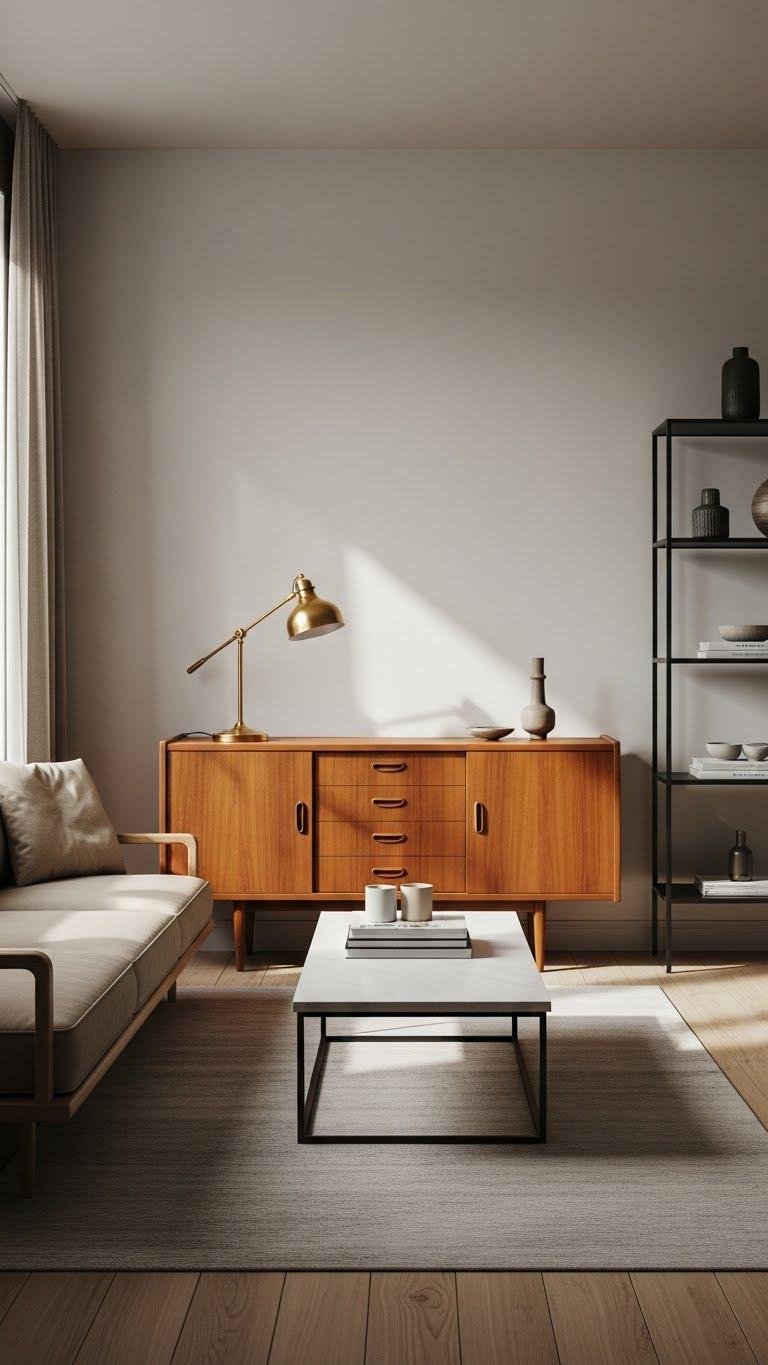 You’ll mix antique silhouettes with minimalist frames, pairing a midcentury sideboard or brass lamp alongside neutral sofas.