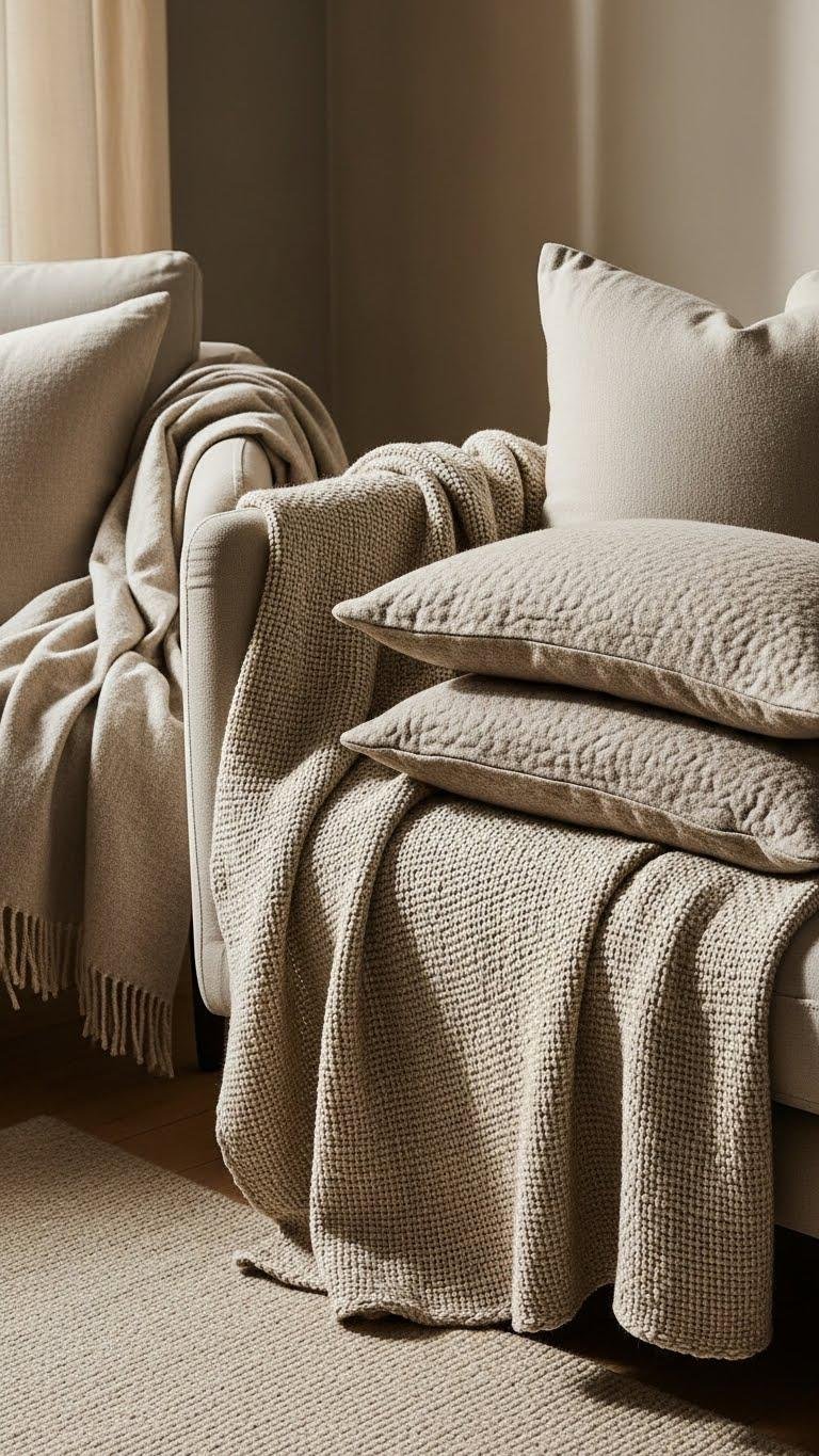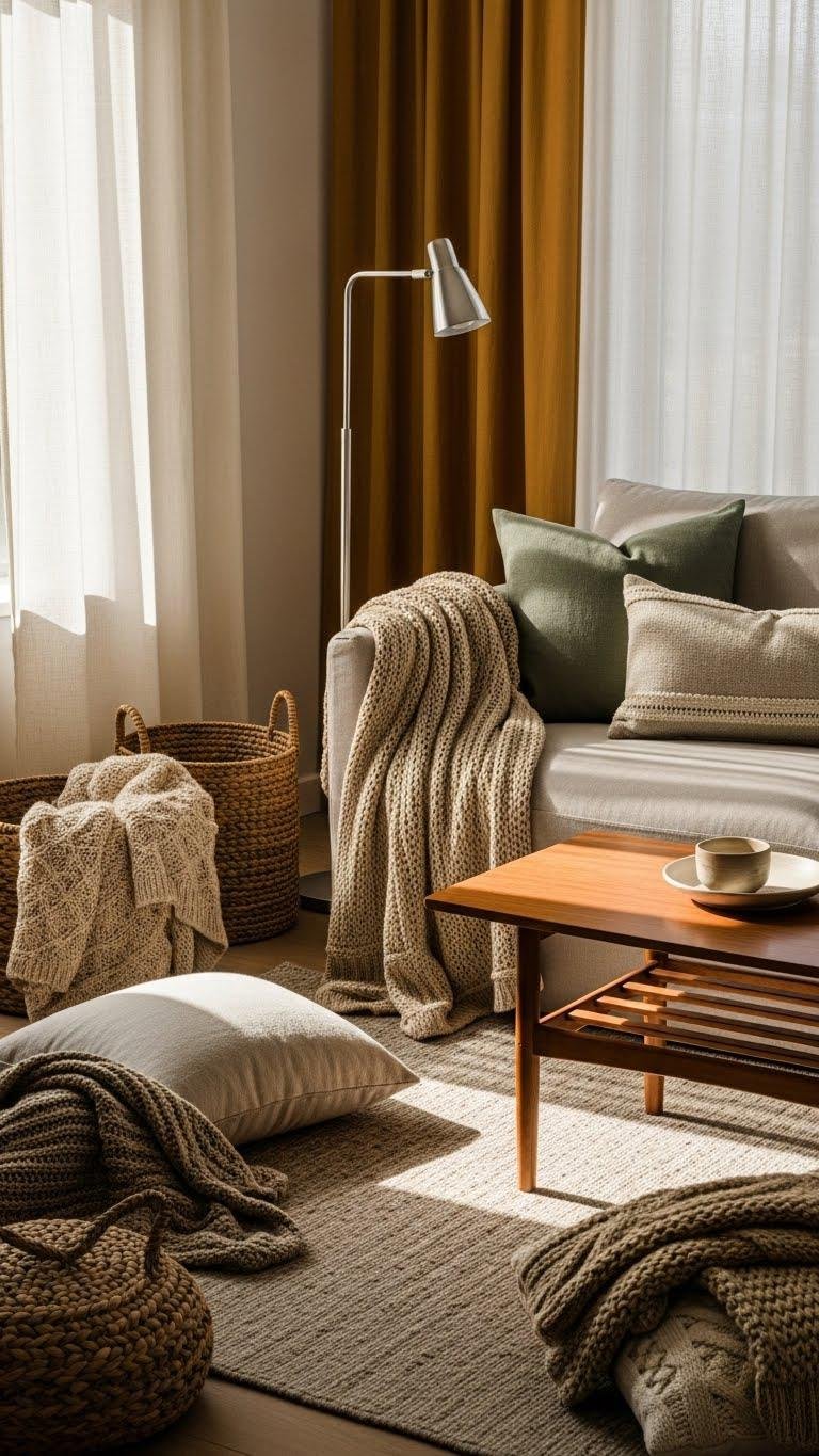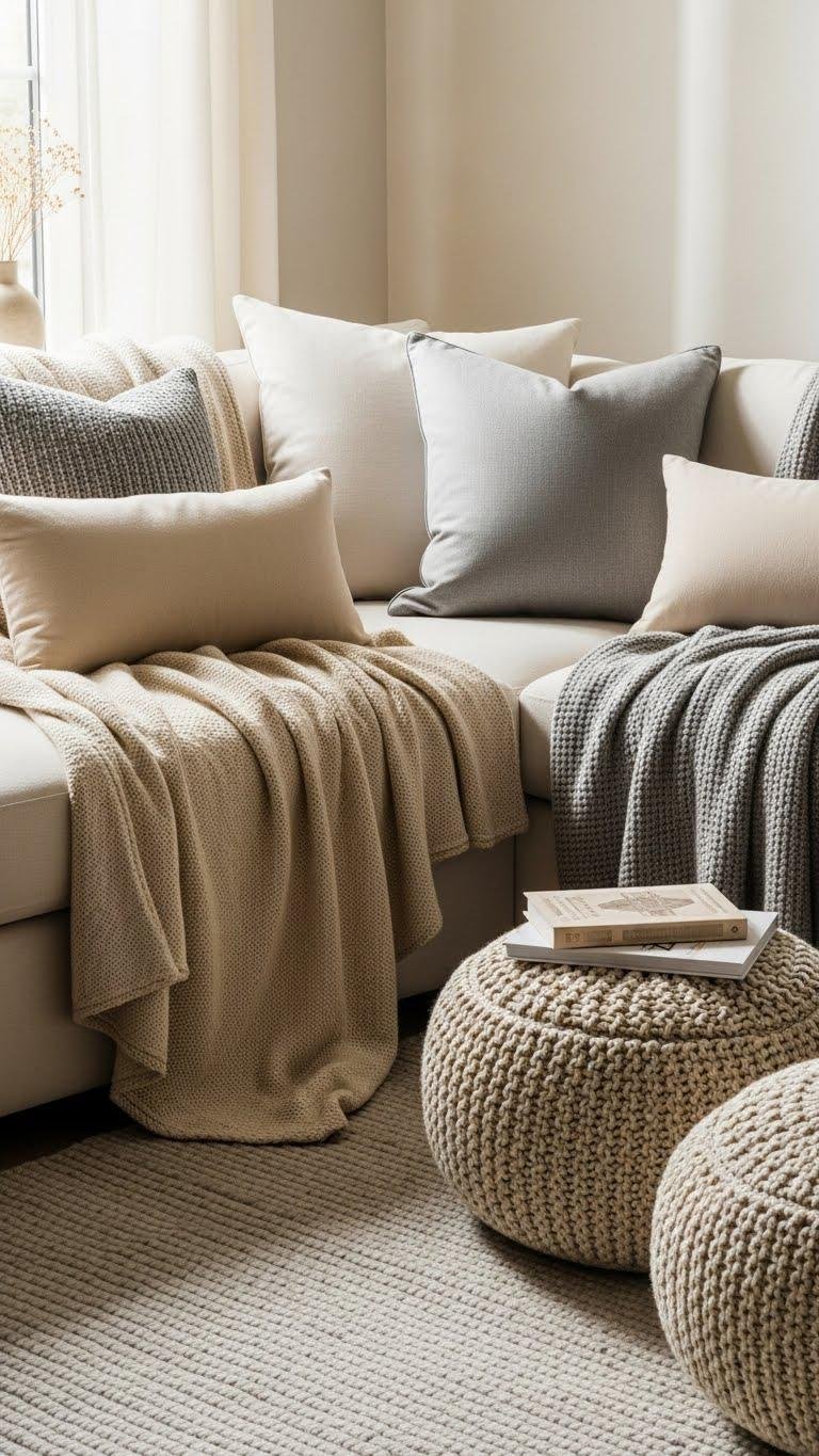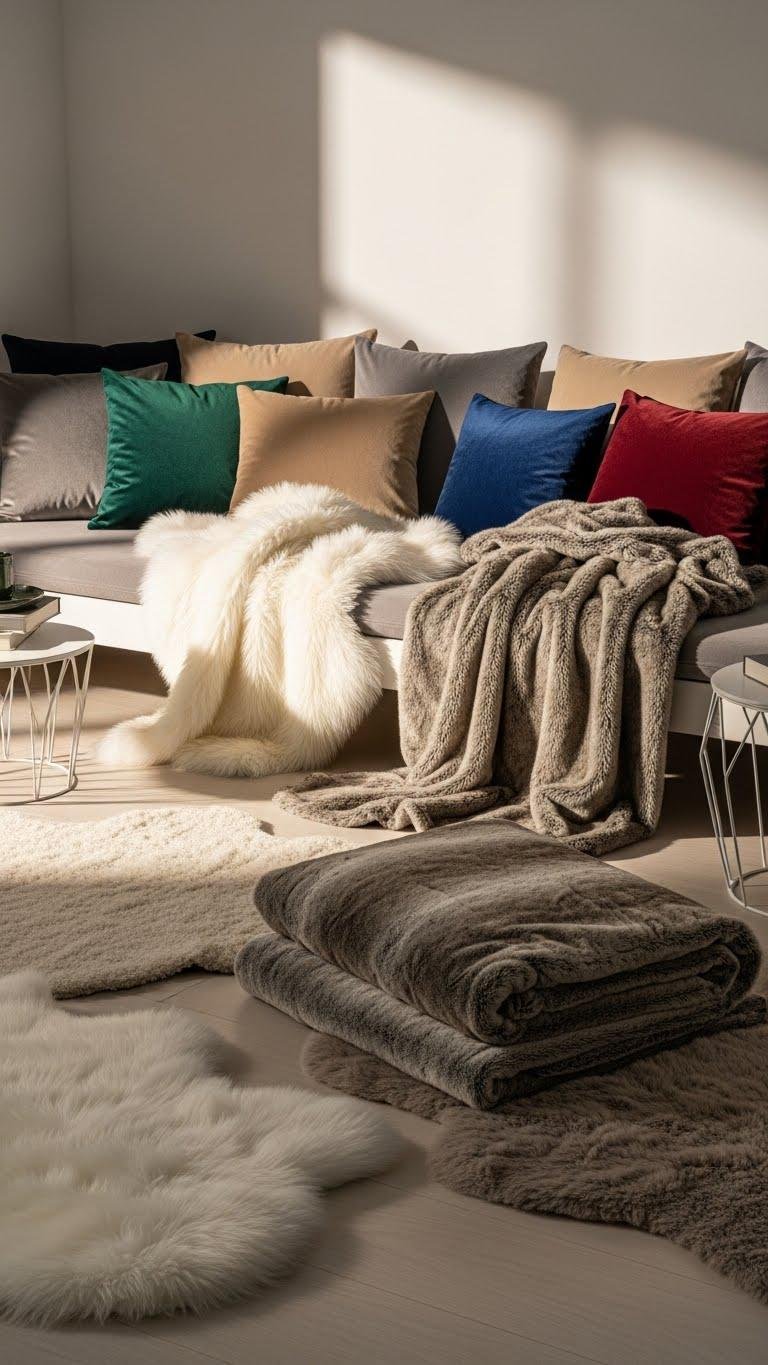 Often the easiest change is layering plush textiles—you’ll want a mix of throw blankets, oversized pillows, and a tactile area rug to instantly soften the room and invite lingering.