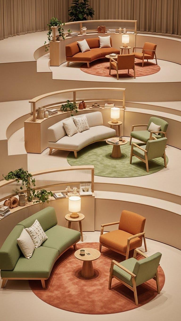 You’ll craft intimate seating clusters that invite lingering, using curved conversation layouts to erase hierarchy.