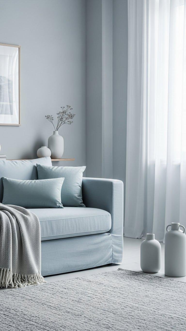 Use sage textiles—throws, cushions, a linen slipcover—to add depth and ease.