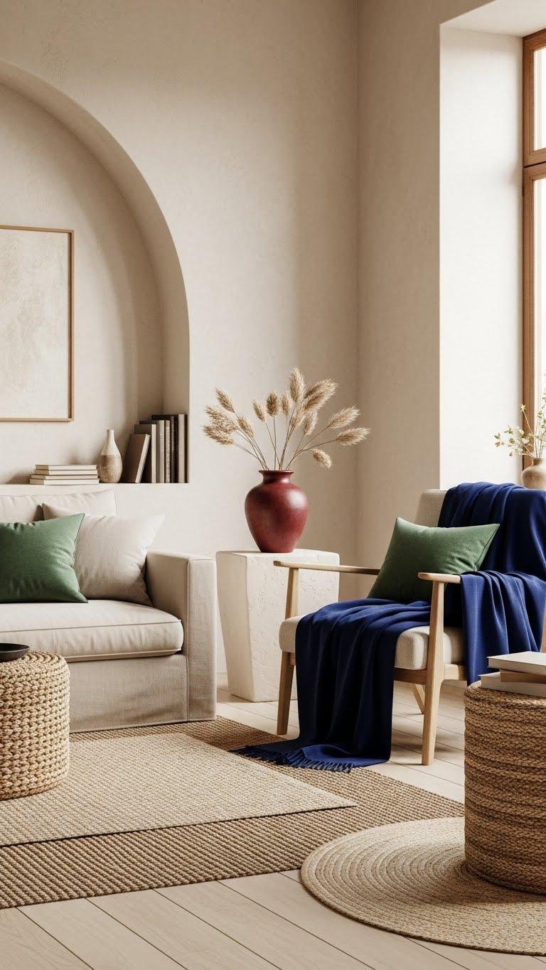Mix textures to keep it fresh and open; let bold accents breathe, create contrast, and give you freedom to swap pieces seasonally without repainting or reupholstering.