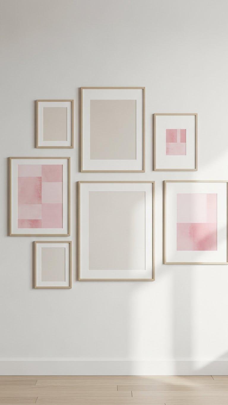 Neutral Gallery Wall With 30–40% Pink Artwork