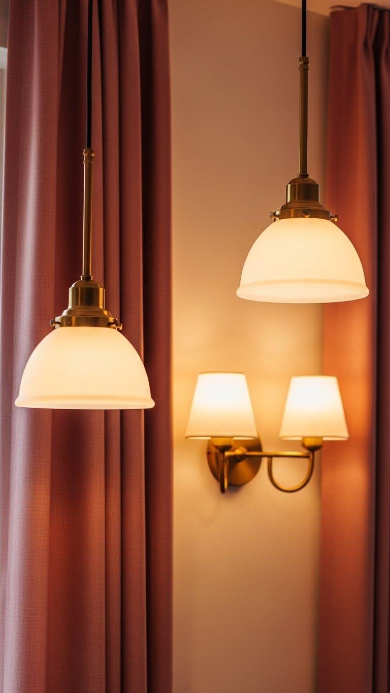 Choose antique brass pendants or wall sconces to add depth and a lived-in charm. Pair with frosted glass shades for diffuse, flattering light.