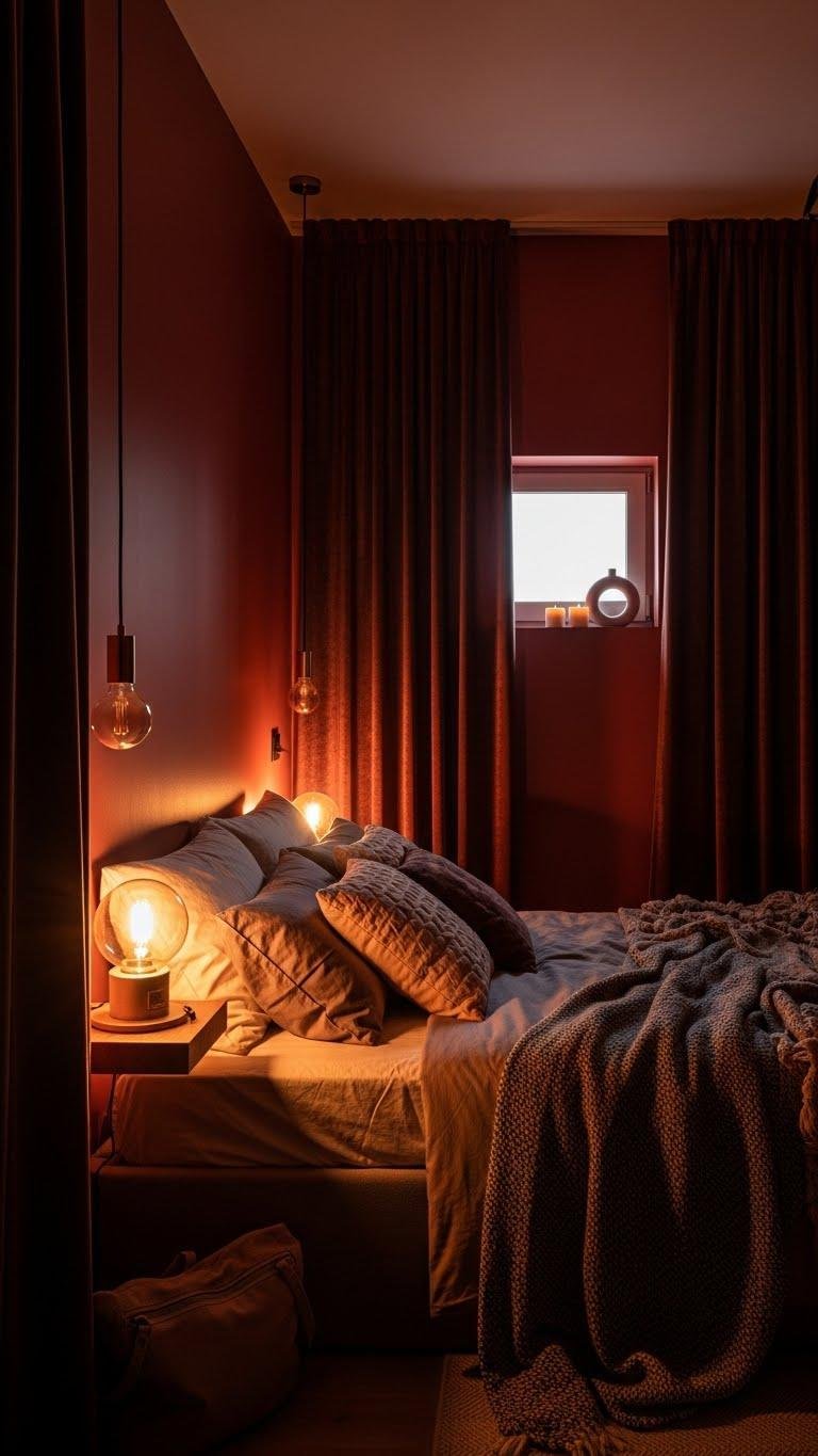 Deep Nether Red Accent Wall for a Cocooning Bedroom