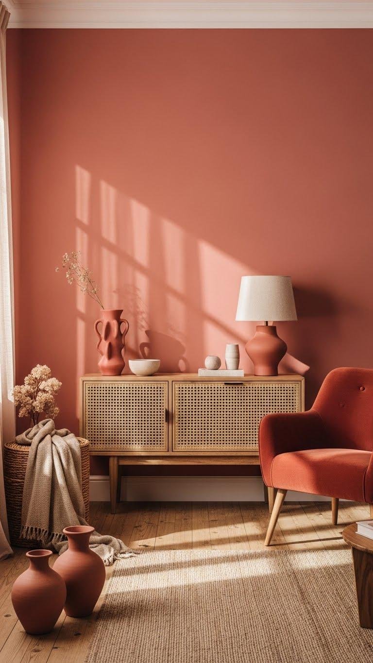 If your living room softens with a blush throw, take that same gentle intent into the bedroom by anchoring the space with a deep nether red accent wall. You’ll create a cocooning backdrop that liberates rest.