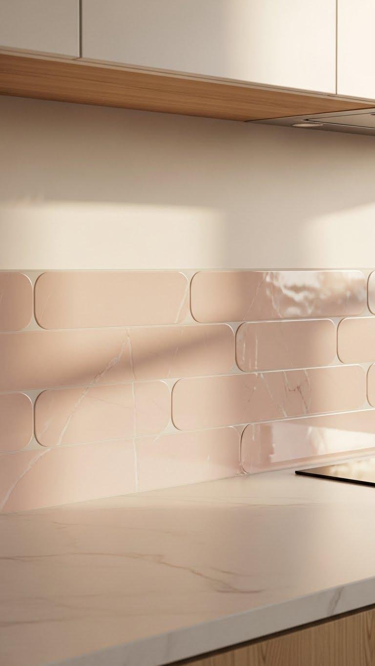 When you choose a soft pink tile backsplash in a neutral kitchen, it quietly lifts the palette—adding warmth and depth without stealing focus.