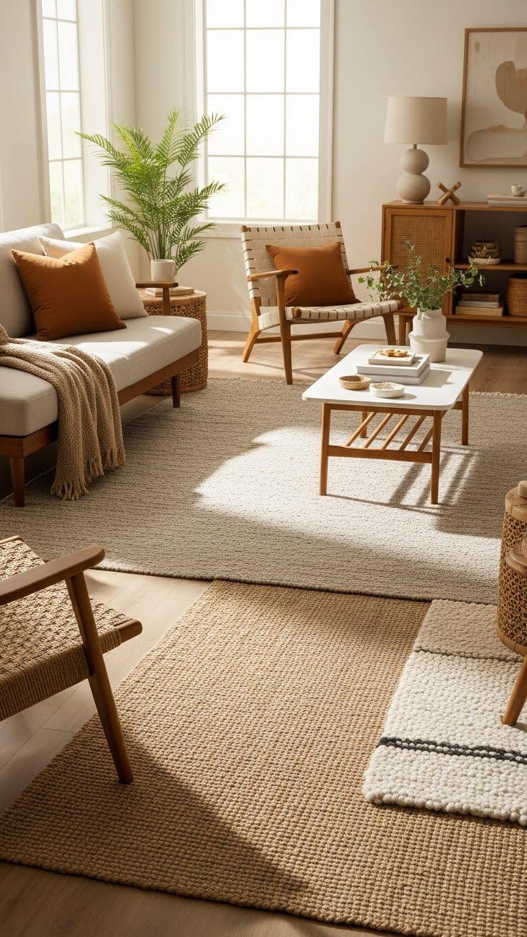 Choose low pile rugs for clean lines and easy movement, or opt for tactile jute and boucle to add touchable depth. Embrace woven layering to define zones, soften floors, and let your spaces feel breathable, lived-in, and free without fuss.