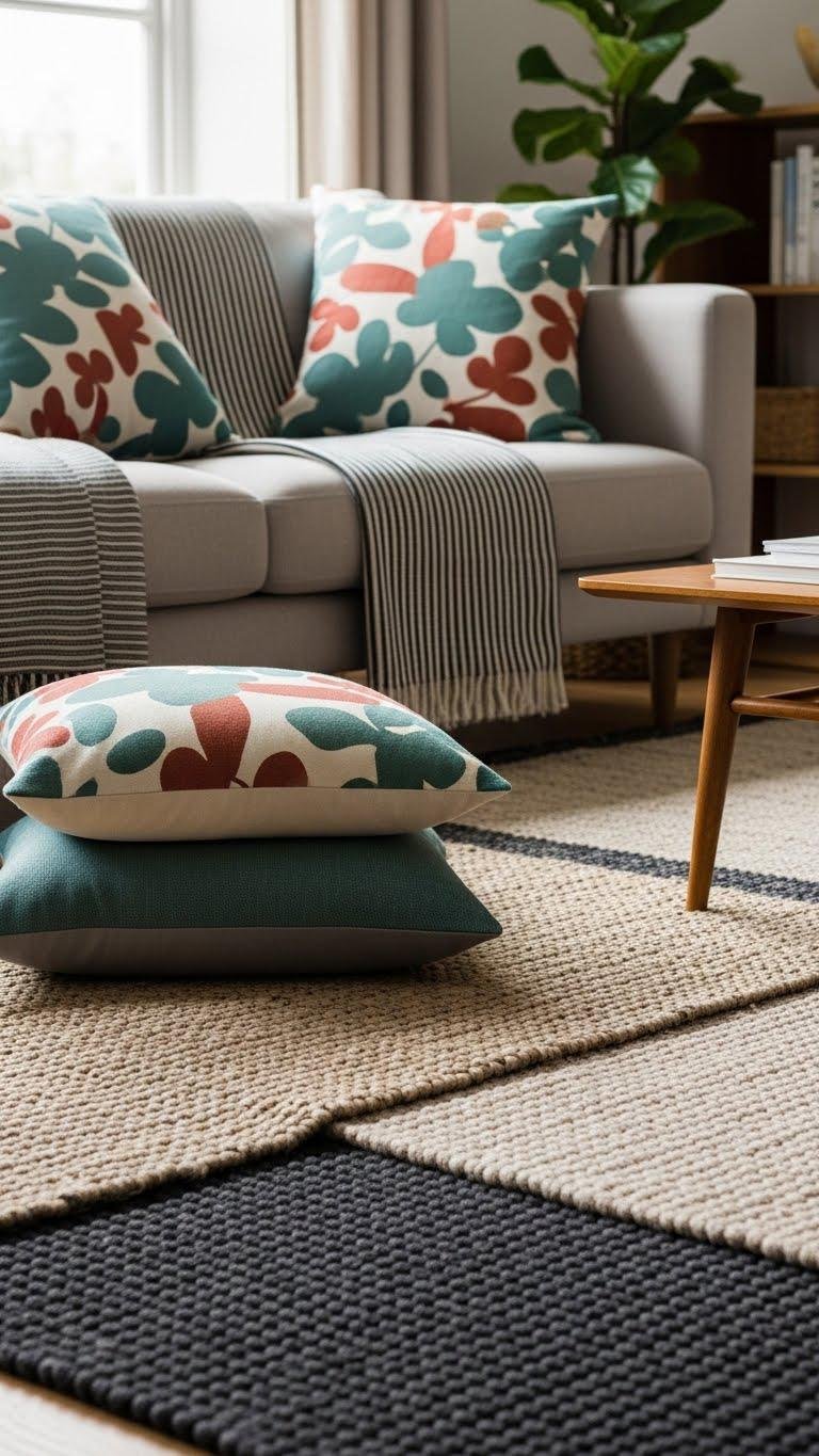 You’ll mix contrast prints with calm solids, pair geometric florals on cushions with striped throws, and keep a consistent color story to let each motif sing.