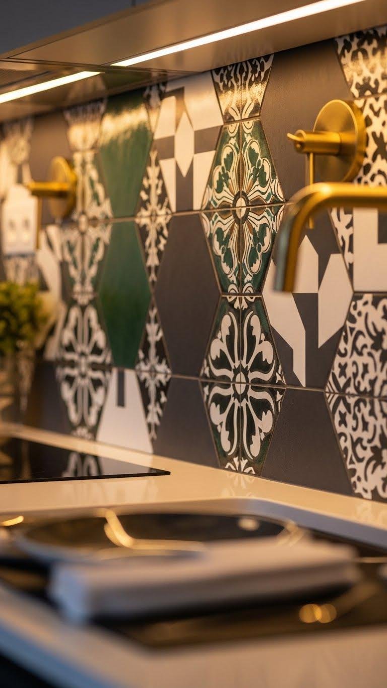 Make a backsplash pop by choosing tiles that act like jewelry for your kitchen — bold shapes, unexpected textures, and striking grout lines turn a functional wall into a focal point.