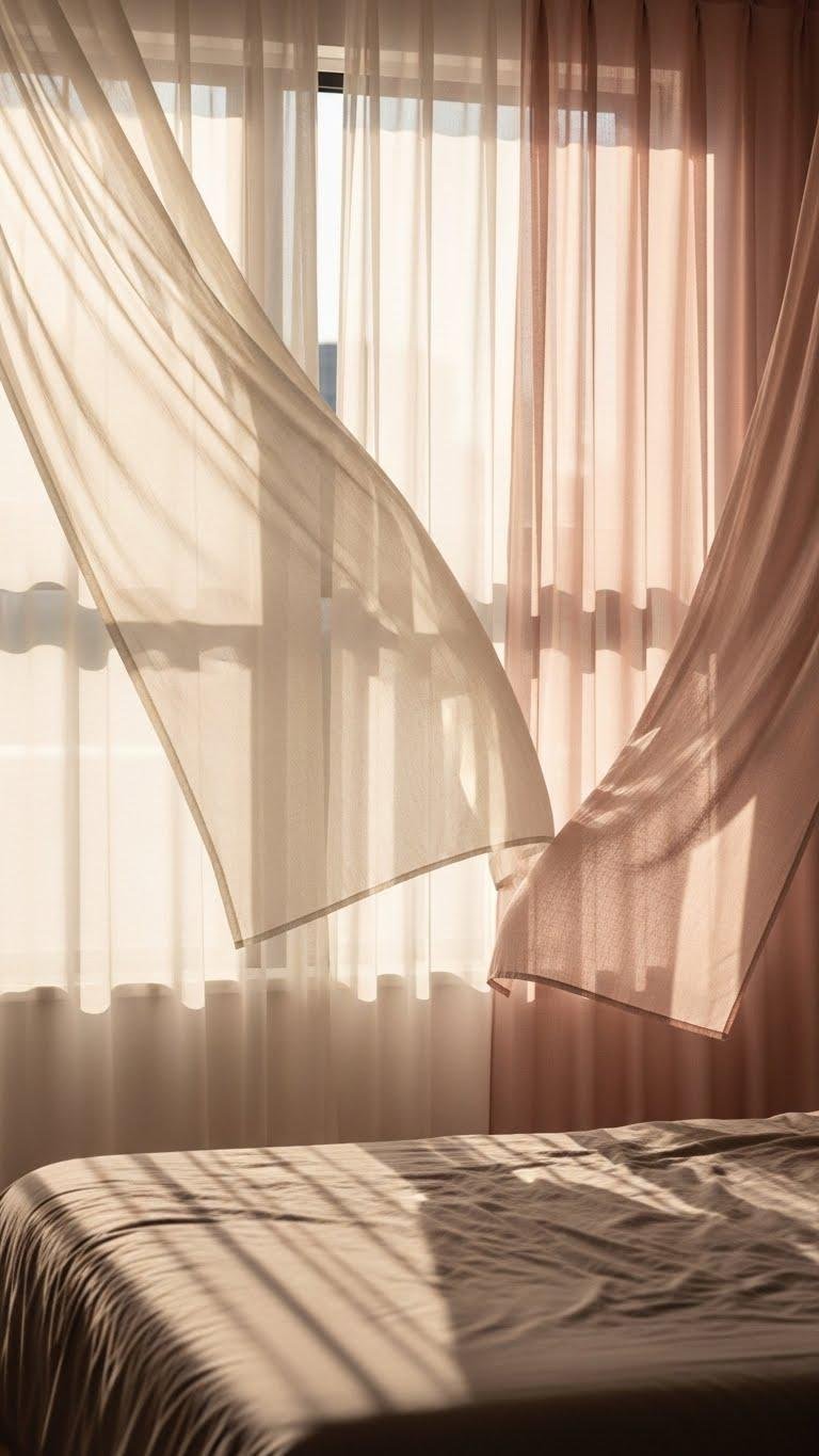 Often you’ll want window treatments that feel as light as breath — billowy lightweight fabrics float in the breeze, softening sunlight and lending your bedroom an effortless, romantic silhouette. Choose gauzy panels and flowy voiles to maximize natural light while preserving privacy. Their breezy textures invite movement, loosen formality, and let you cultivate a liberating, intimate retreat without sacrificing softness or style.