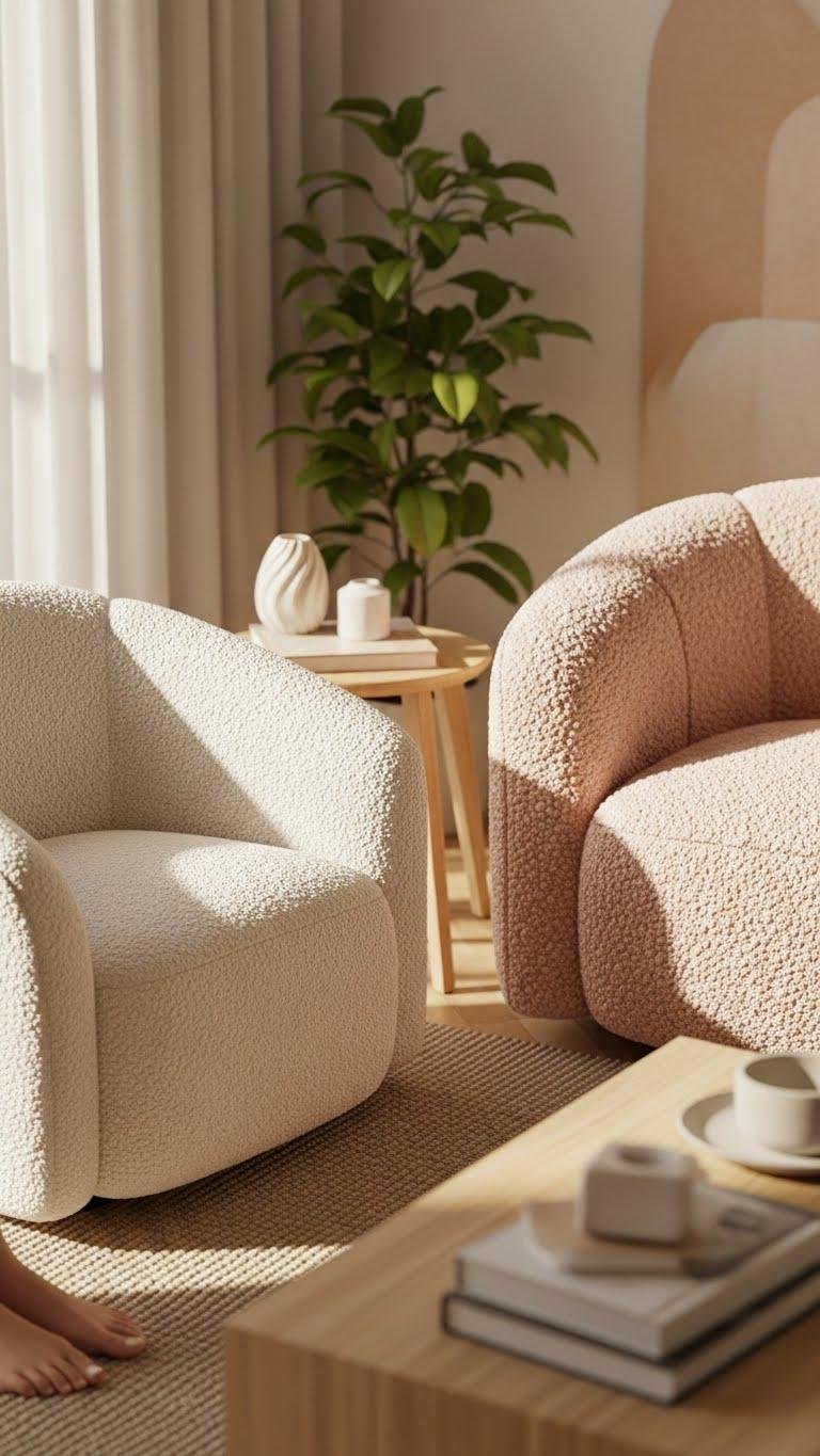 Hunt curated boucle sourcing for vintage or sustainable finds, mix curved silhouettes and light tones, and let textured seating become a gentle, liberating centerpiece that asks you to linger.