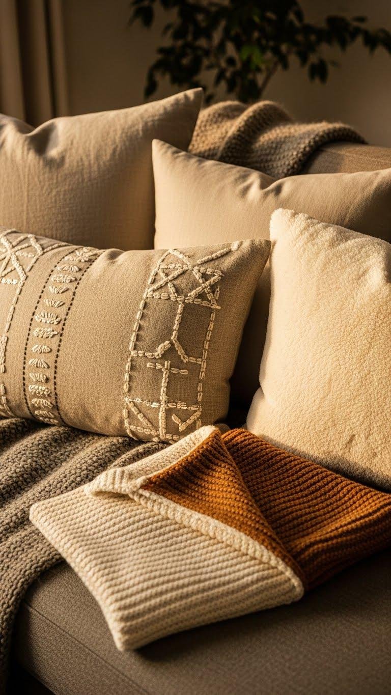 Switchable Throw Pillows in Warm Textures