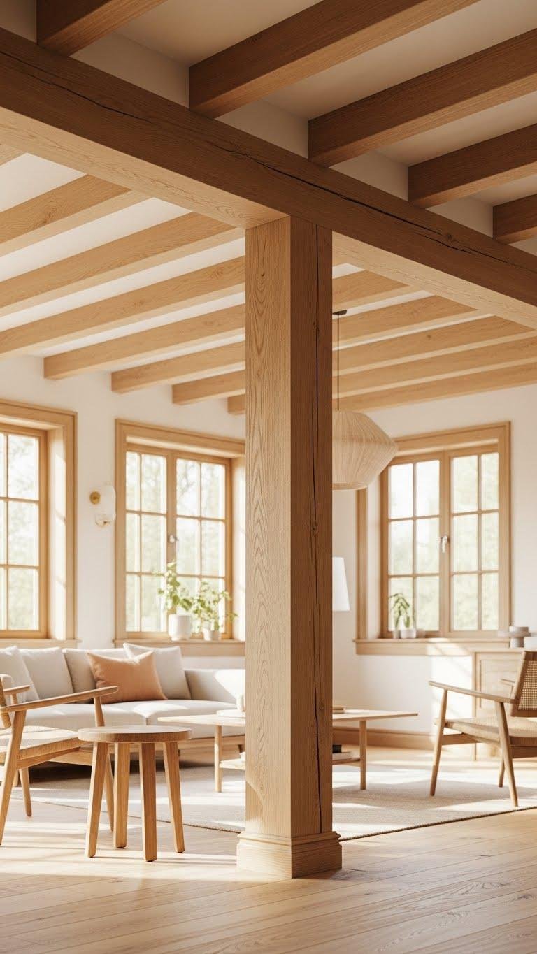 Choose sanded beams and crisp trim that age gracefully; you’ll celebrate texture without fuss. Visible mortise joinery signals honest construction and subtle luxury, letting furnishings breathe. This approach feels modern yet grounded, freeing you to rotate seasonal accents while the architecture stays resolutely serene.