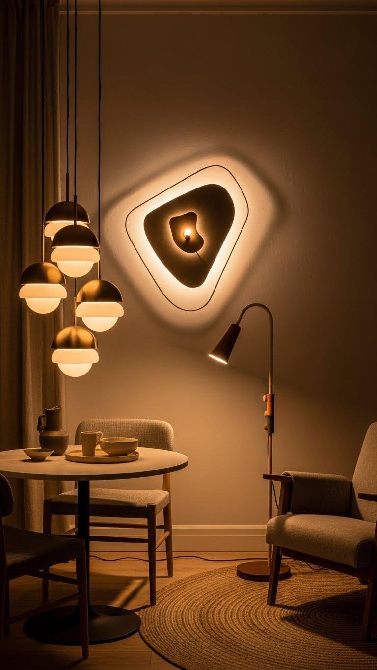 You’ll mix dimmable pendants for mood control, layered sconces to free floor space, and targeted task lamps.