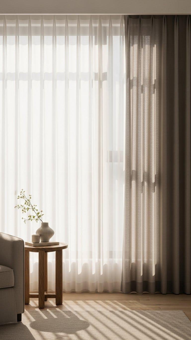 Pick breathable linens or voile in muted palettes to keep spaces calm, modern, and effortlessly luminous.
