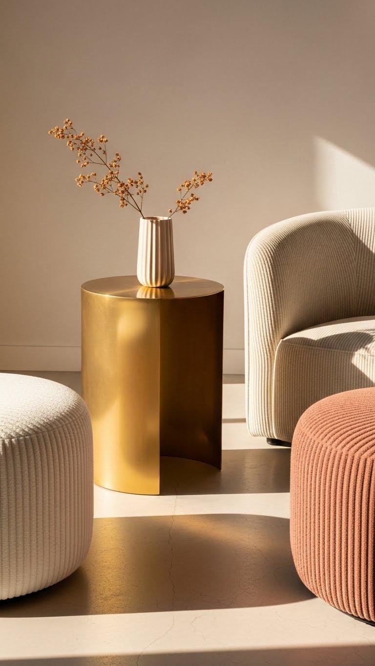 Drawing the eye and softening hard lines, fluted and curved accent pieces give your apartment an instant style refresh that feels both current and timeless. Choose a curved brass side table to add sculptural warmth, pair with fluted ottomans for tactile rhythm, and favor soft silhouettes over boxy furniture. You’ll create airy, liberated rooms that feel curated without constraint or clutter.