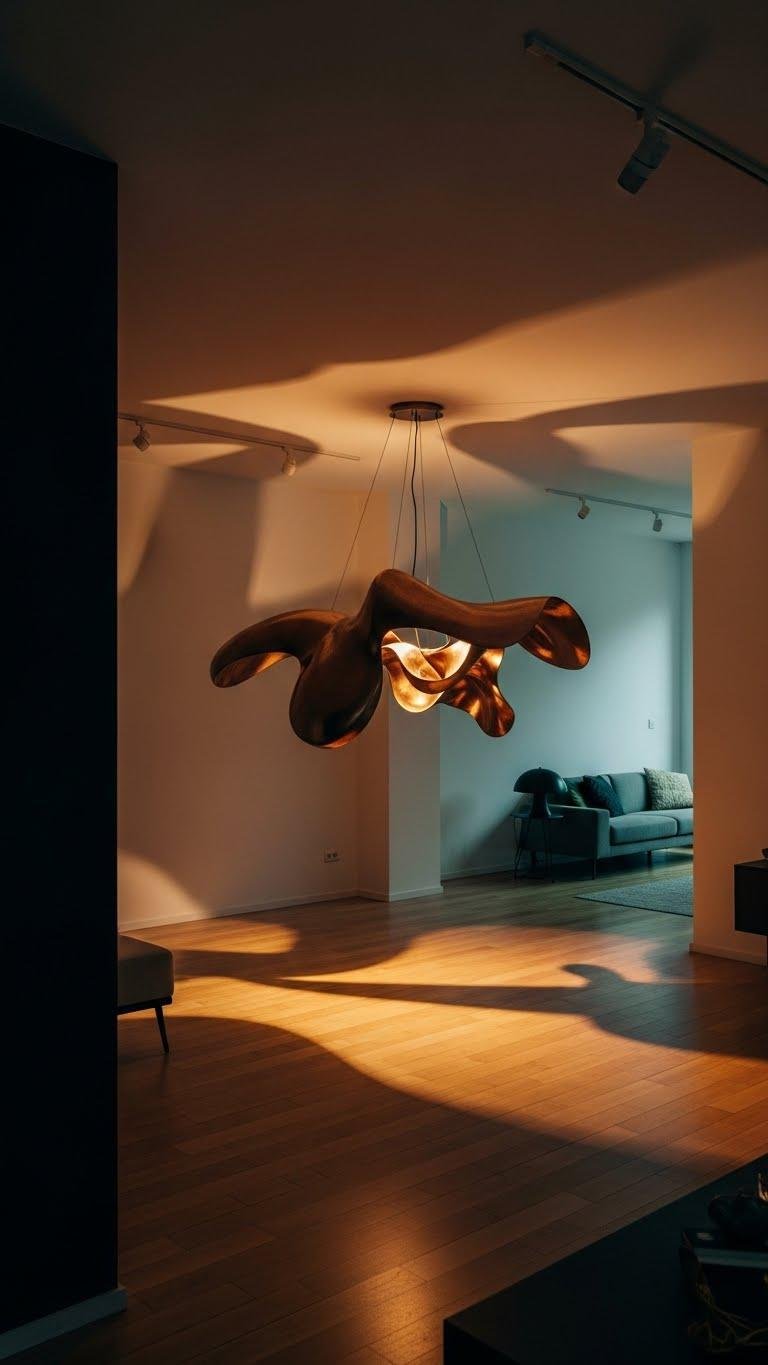If woven pendants give your apartment a soft, natural glow, sculptural lighting will make a bold statement that reads like art. Choose amorphic pendants or metal forms to anchor a room; they demand attention and encourage movement.