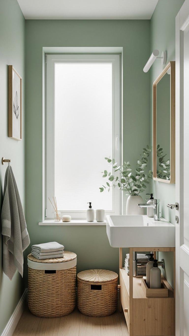When you paint walls or add accents in soft sage, the bathroom instantly feels calmer and more rooted—its muted green brings a natural, spa-like quality without overpowering the space.