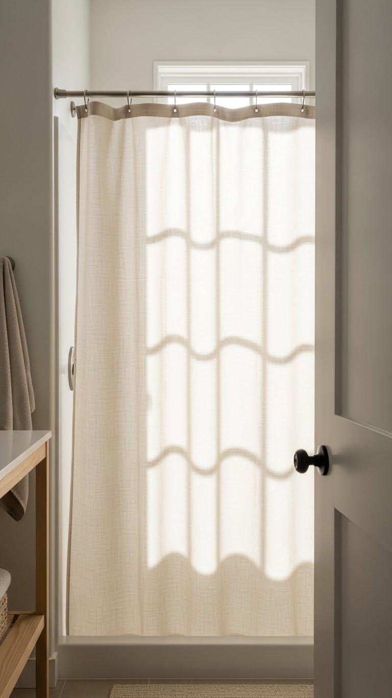 A light linen shower liner instantly lifts the room, letting soft, diffused light pass while adding a tactile, natural layer that reads fresh and airy. You’ll choose linen textures that resist mildew yet feel breathable, pair them with simple hardware, and favor airy silhouettes to keep sightlines open.