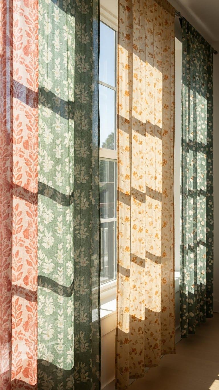 If you want instant spring refresh without heavy fabric, swap in lightweight block-print panels that filter light and add handcrafted pattern.