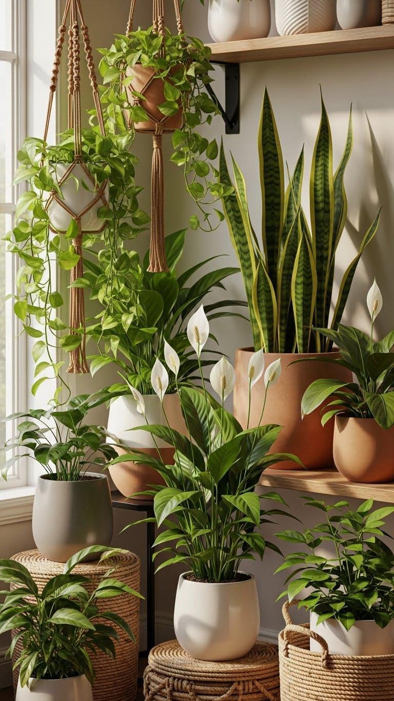 Layer Greens With Pothos, Snake Plants, and Peace Lilies