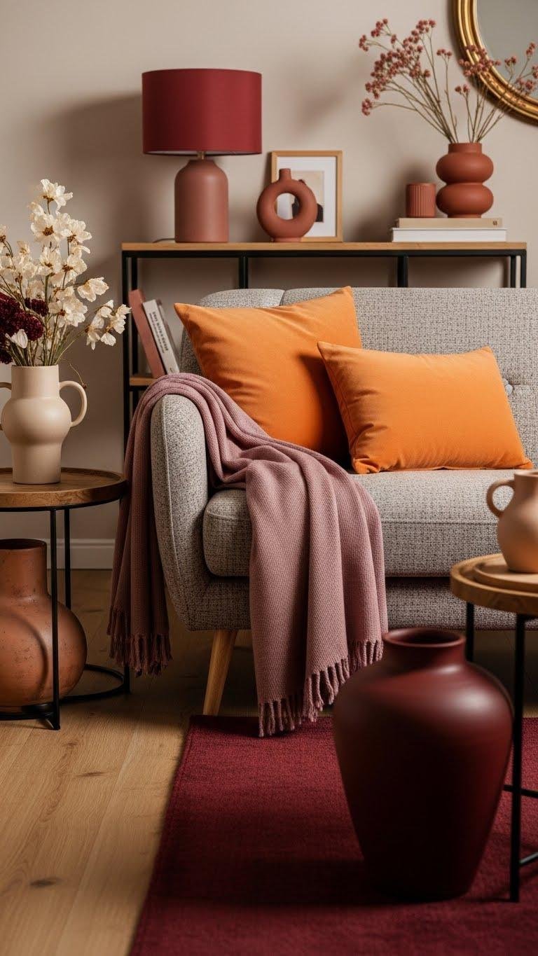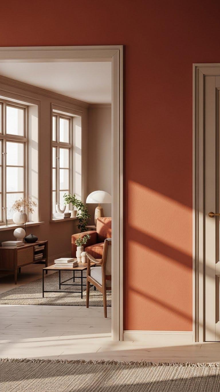 When you swap out tired neutrals for rusty terracotta or pale beige, the room immediately feels warmer and more intentional—the terracotta brings cozy, sunbaked depth while pale beige brightens without feeling clinical.
