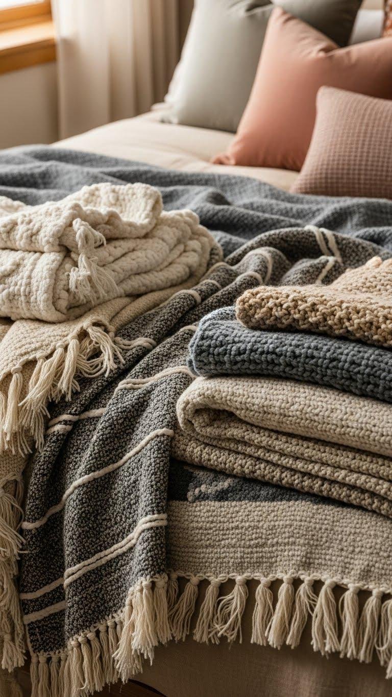 Layer Textures on Beds With Woven Throws and Tactile Cushions