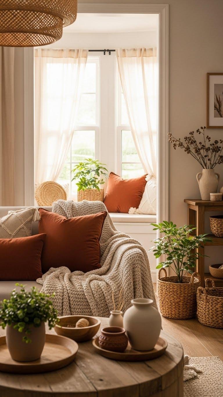 Start with a warm neutral palette to create a cozy, versatile base that lets seasonal accents shine.