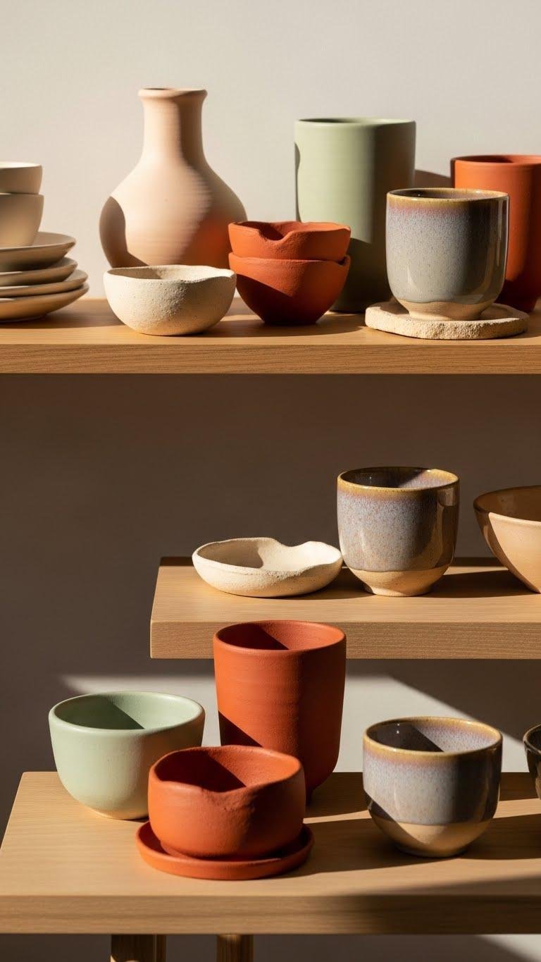 Introduce terracotta and clay accents to bring grounded warmth and tactile contrast to a neutral spring palette.