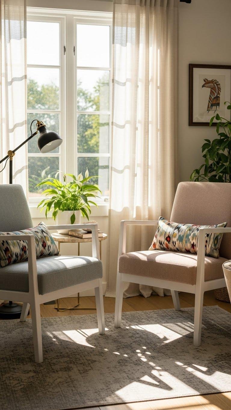 Pair a couple of well-scaled chairs to carve out an intimate conversation nook that feels intentional and effortlessly stylish. You’ll use pair seating to face friends, lean into chat, and soak up breezy spring light.