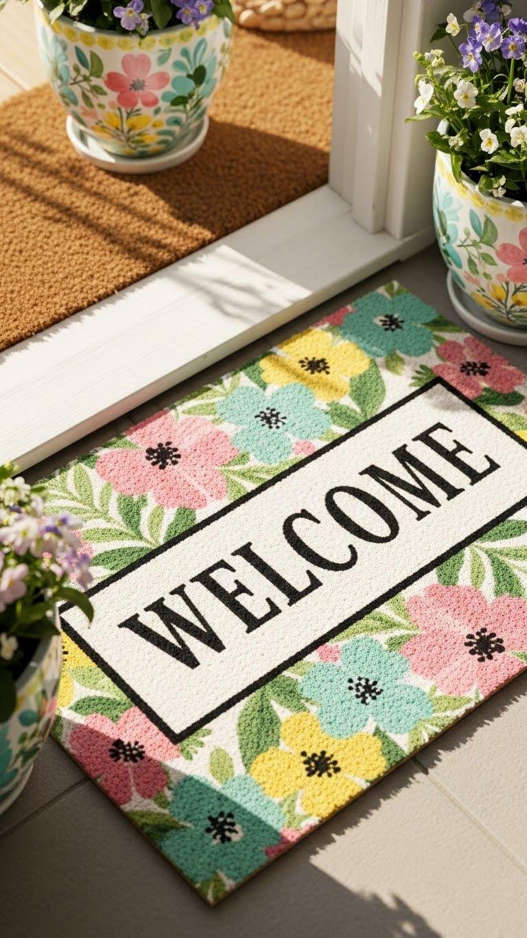 Refresh your entry instantly with a spring-themed doormat that sets the tone for the whole porch—think cheerful florals, soft pastels, or a bold botanical print that complements your planters. Choose a durable coir or washable mat with a playful floral welcome motif or crisp seasonal typography to express your style. Swap it quickly to give guests a bright, liberated first impression.