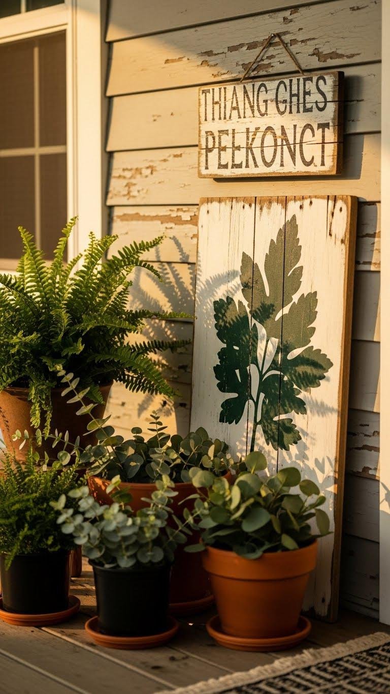 A rustic or botanical sign can set the tone the moment guests arrive, giving your porch personality without overpowering the space.