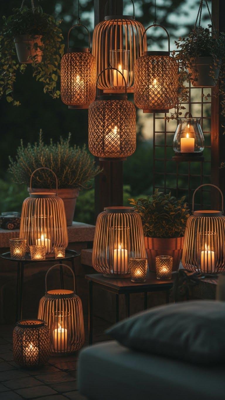 When you group lanterns and sheltered candles at varying heights, they create an intimate, layered glow that feels both curated and effortless. You’ll mix metal, glass, and woven textures, choose lantern placement for sightlines, and tuck sheltered candles where wind won’t snuff them. Embrace simple arrangements that feel freeing, and always prioritize candle safety with stable bases and clear surroundings for relaxed evenings outdoors.