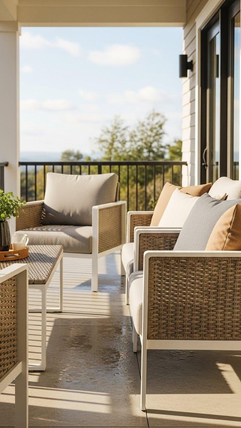 You’ll want furniture that stands up to sun, rain, and the occasional splash without sacrificing style—think durable yet laid-back pieces that feel as intentional as they’re tough. Choose aluminum frames for light, rust-free structure and synthetic wicker for carefree texture. Pick breathable cushions in quick-dry fabrics, sculptural silhouettes, and neutral tones so your porch feels open, easy, and ready for adventure.
