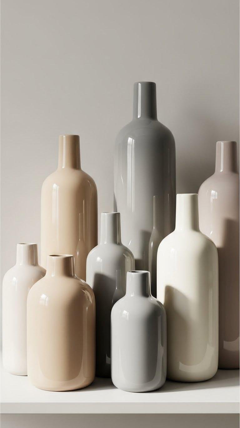 Cluster Monochrome Ceramic Vases by Height