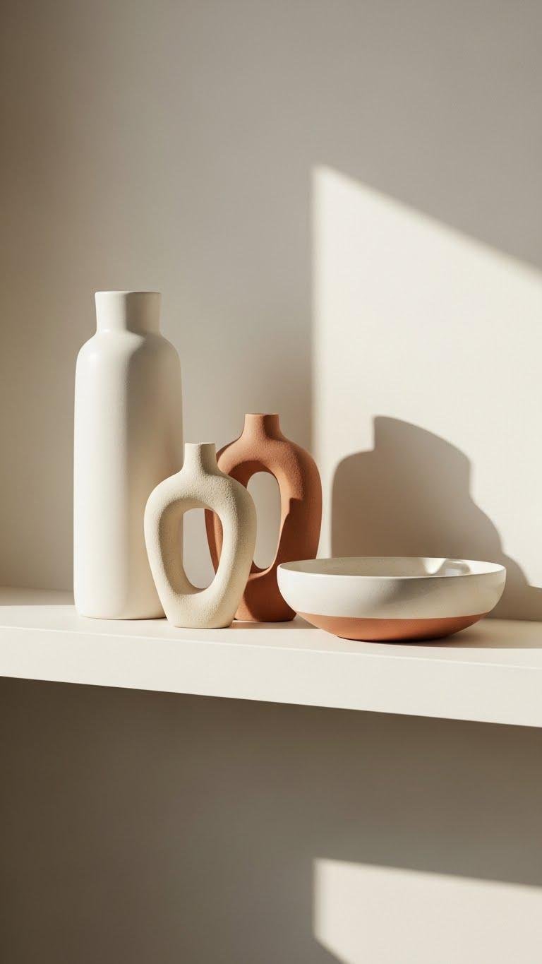 Swap out dense, glossy pieces for matte, pale vessels to instantly lighten your shelf and let spring’s calm breathe through the space. Choose matte vases and pale ceramics that whisper rather than shout; group a few simple shapes, leave breathing room, and rotate seasonal stems.