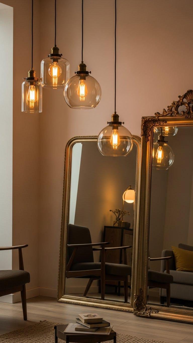 If you want to anchor a modern room with character, vintage lighting and statement mirrors give you instant personality without overpowering a pared-back scheme. Mix antique glass pendants with Edison bulbs for warm, liberated glow.