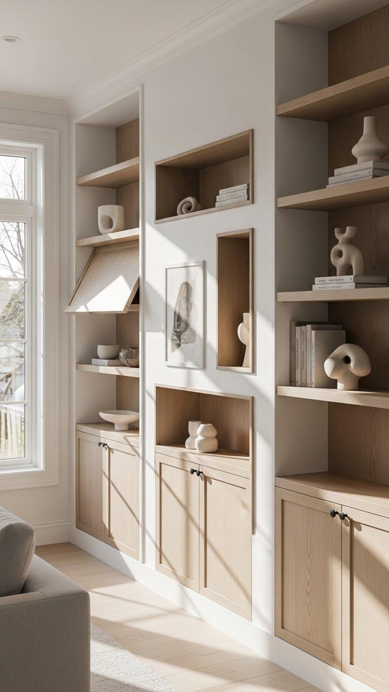 Framing your space with built-in shelving instantly elevates both form and function, giving you tailored storage that looks like it grew with the room.