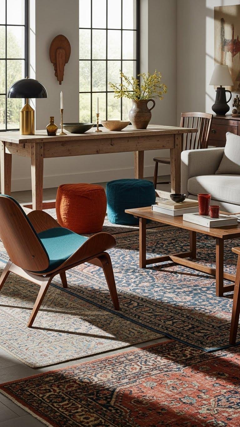 Think of curated mixed‑era furniture groupings as a conversation between pieces — midcentury chairs trade lines with a reclaimed farmhouse table while a contemporary sofa anchors the room — and you’ll start to see how to balance contrast and cohesion.