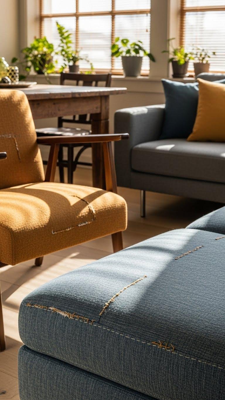 When you pair vintage chairs and a reclaimed table with a contemporary sofa, you also need fabrics that can keep up with everyday life and still look curated. Choose stain resistant, repair friendly textiles that resist tears, shrug off spills, and let you mend seams easily. Pick uv protected, eco friendly options so your freedom-filled space stays beautiful, low-maintenance, and sustainable.