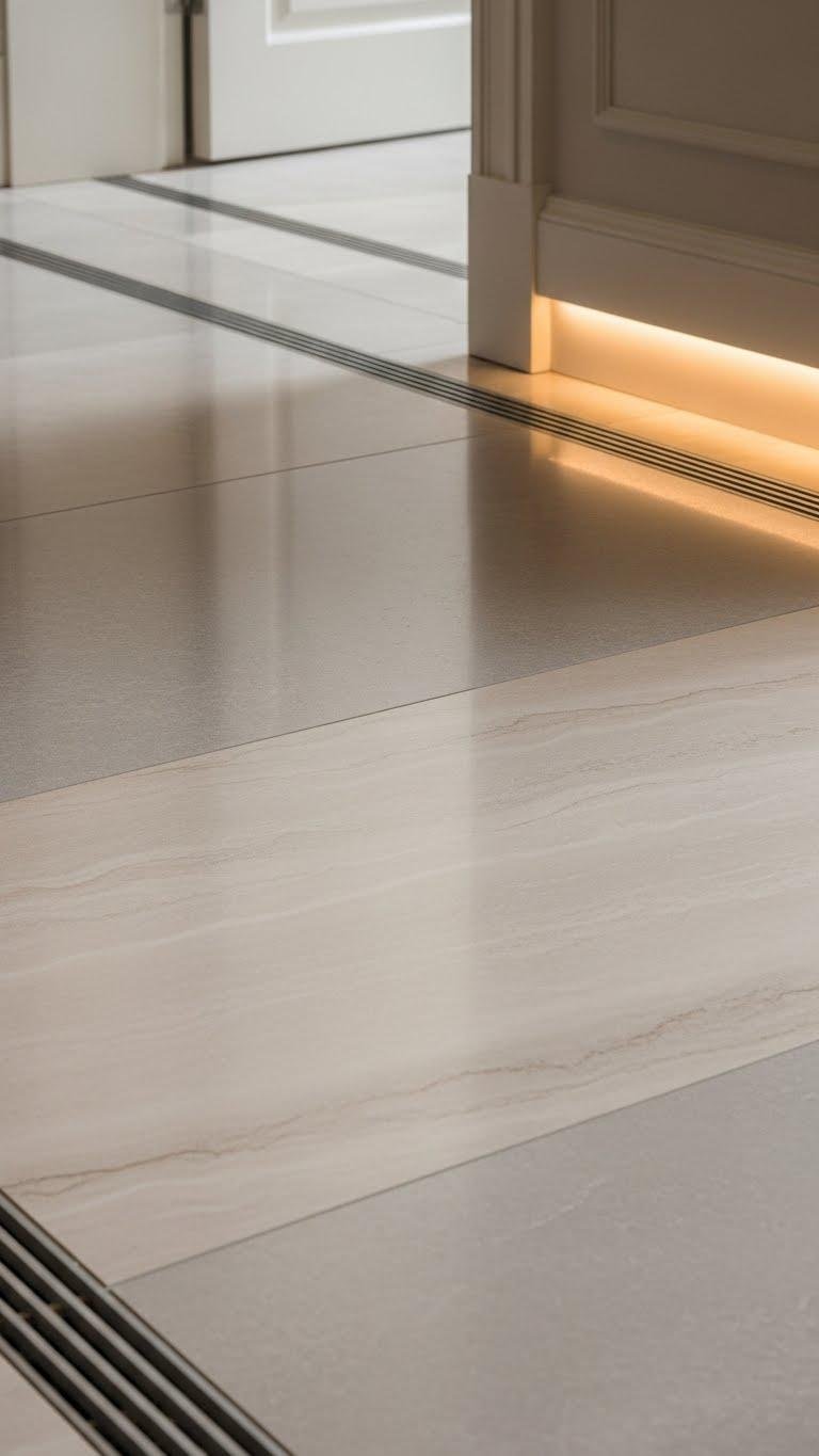Choose natural stone or porcelain for toughness and timeless texture; they resist scuffs, clean easily, and suit radiant heated floors for comfort. Opt for modern grout alternatives like epoxy or sealed narrow joints to simplify maintenance and keep lines crisp.