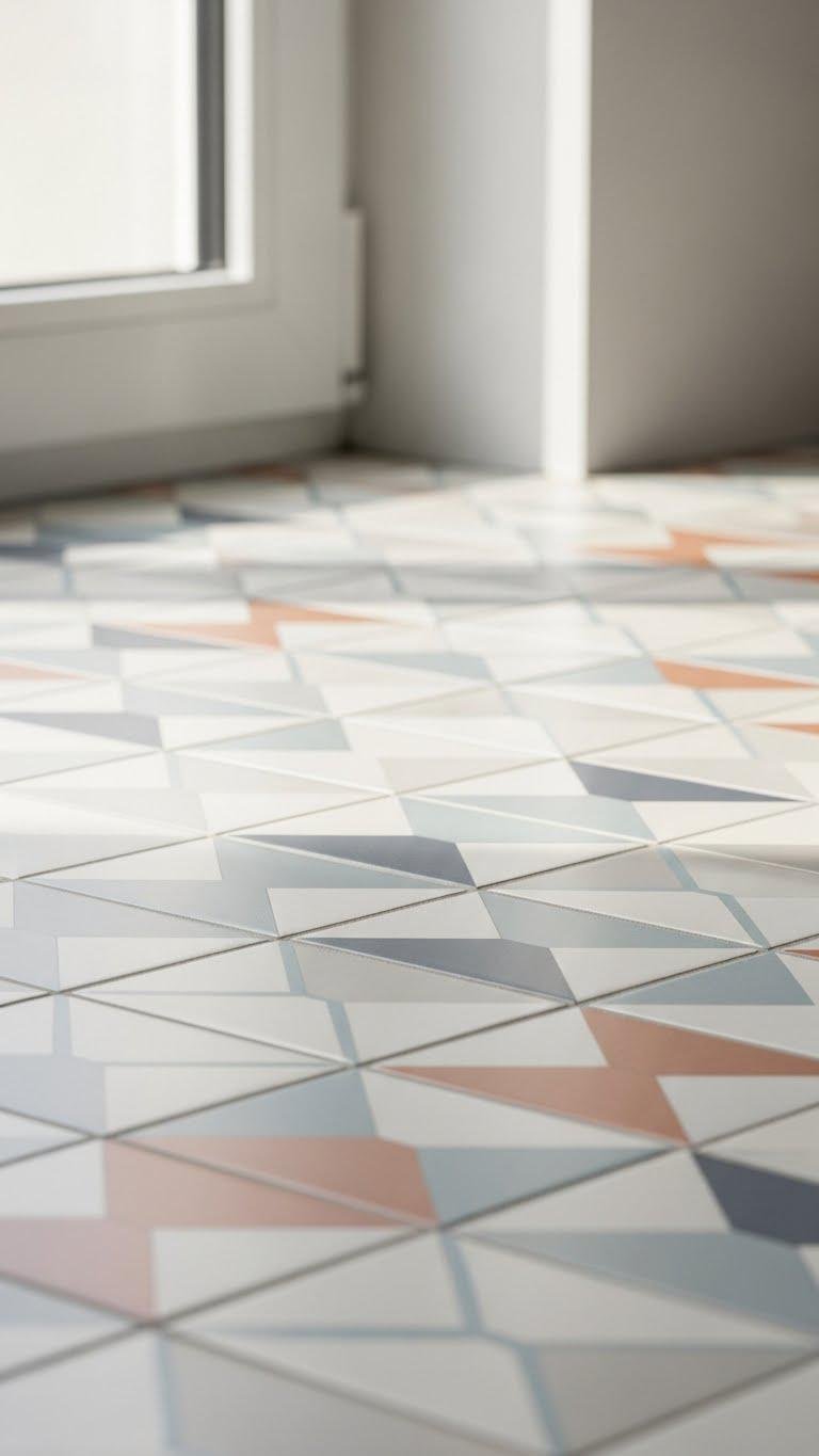 Lean into quiet geometry to give floors and backsplashes a directional whisper rather than a shouted pattern. You’ll choose subtle repeats and negative space, favoring micro‑mosaic layouts and encaustic inspired motifs that read modern without shouting. Keep palettes restrained, grout fine, scale modest — so your rooms feel open, deliberate, and free. These tiles anchor design without dictating it.
